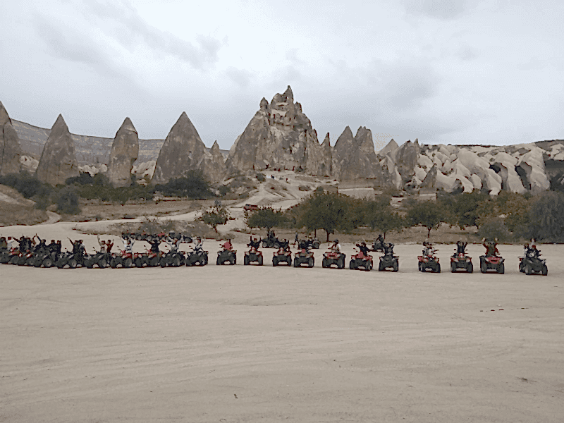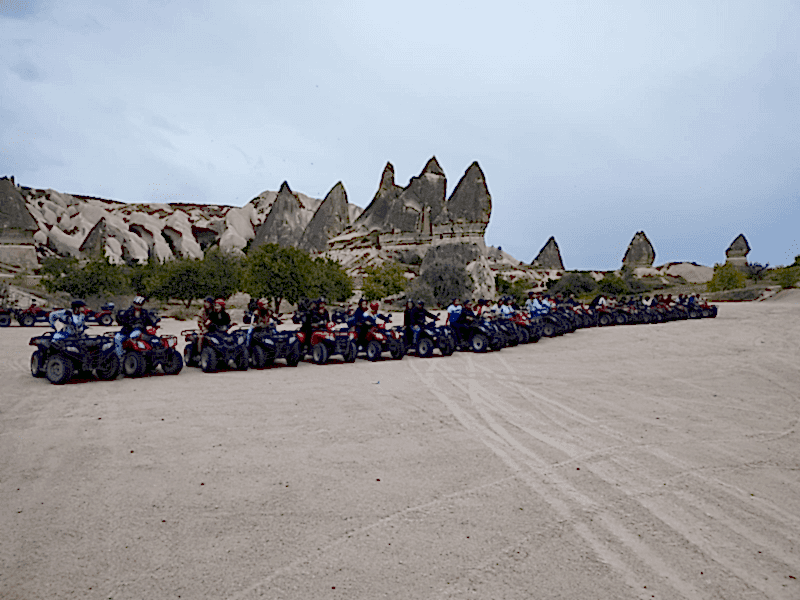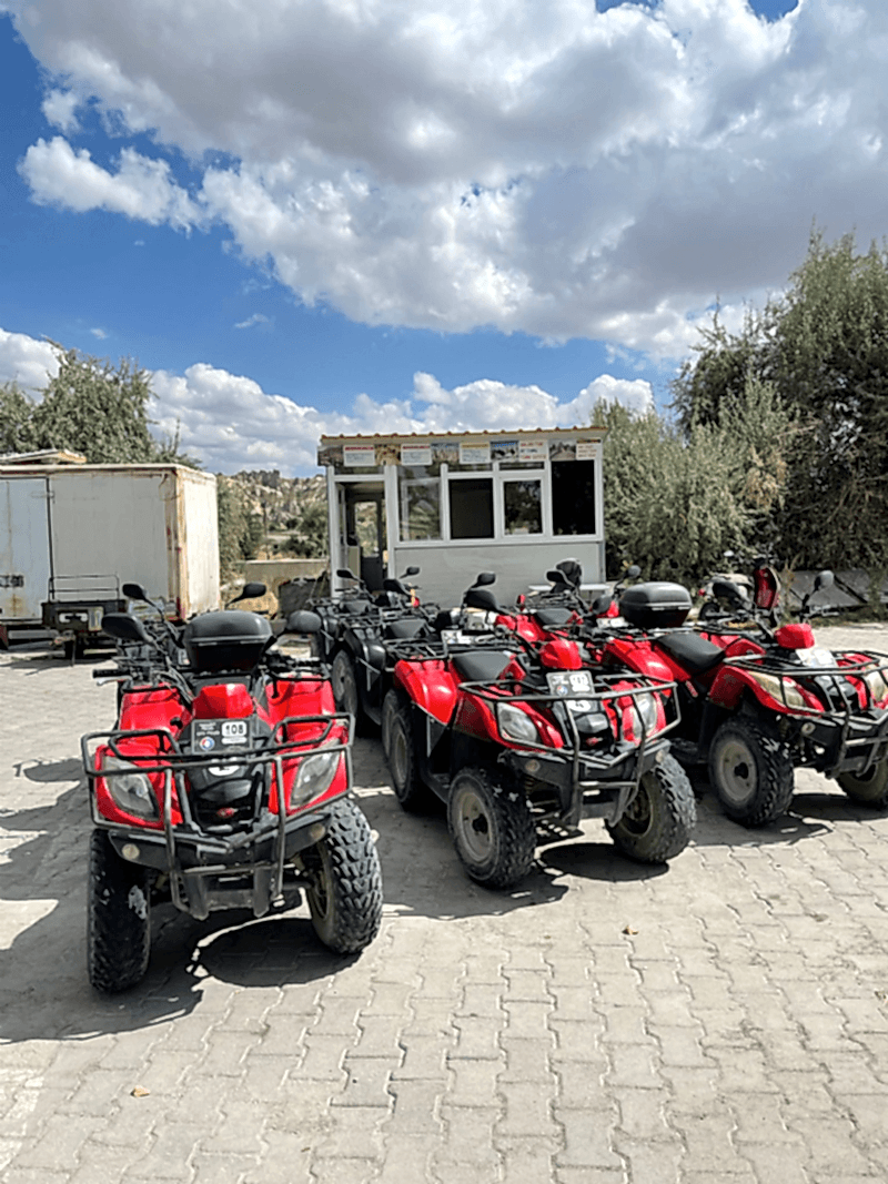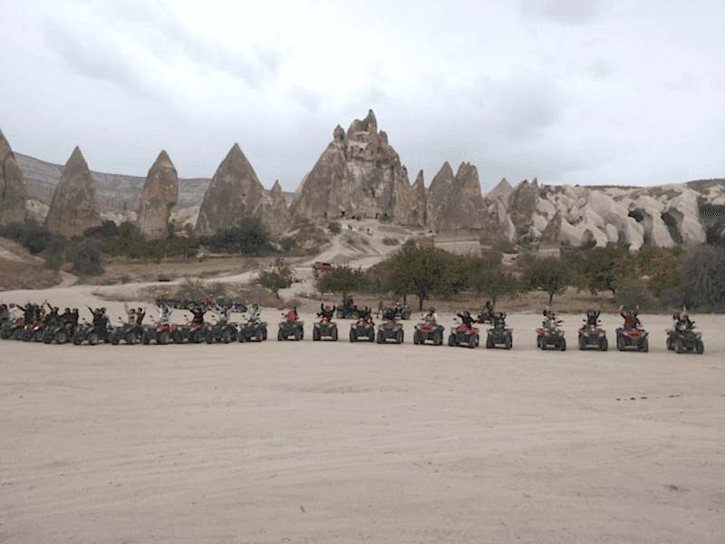 Kapadokya'da ATV Kiralama ve Transfer Hizmeti Kapadokya bölgesine gittiğinizde ATV turları için uygun noktalar bulmak zor olabilir. Bu durumda, ücretsiz transfer hizmetimizle isterseniz otelinizden, isterseniz belirli noktalardan sizi alıyoruz. Tur başladıktan sonra araçlarımız başlangıç noktasında sizi bekliyor olacak. Tur sonrasında ise sizi tekrar otelinize kadar götürüyoruz. Özellikle bayram tatilleri ve hafta sonları, Kapadokya ATV turları ve diğer turlar için oldukça yoğun olabiliyor. Tatilinizi planladıysanız, tur rezervasyonları için önceden yer ayırtmanız önemlidir. Boş yer olmaması için ATV turlarımıza 1 gün öncesinden rezervasyon yaptırabilirsiniz.
